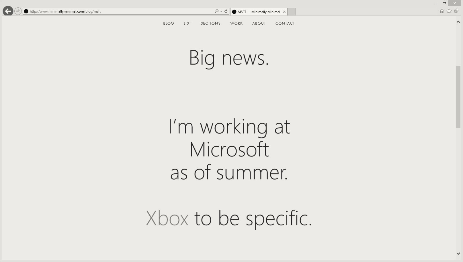 He did a handful of interviews with major companies, but found himself drawn to the Xbox team at Microsoft.
